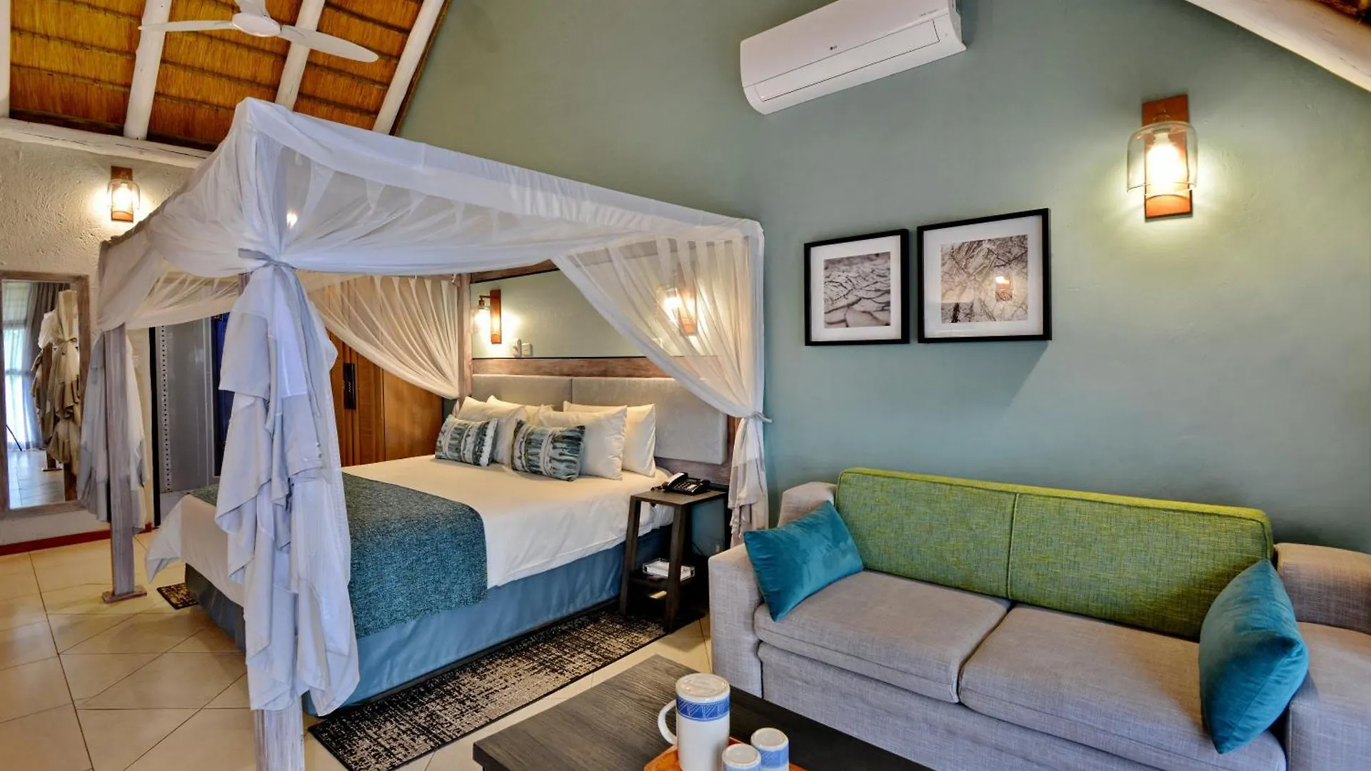 Einige klimatisierte Zimmer im Cresta Mowana Safari Resort & Spa sind mit einem Plasma-TV ausgestattet und verfügen über ein privates Bad mit einer behindertengerechten Dusche und einem Waschbecken. Sie sind im komfortablen Design eingerichtet.