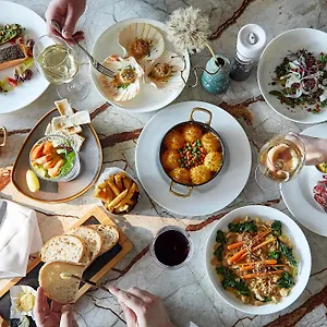 Das Restaurant Omboo blickt aufs Meer und ist auf die asiatische Küche spezialisiert. Es gibt auch eine Lounge- Bar.